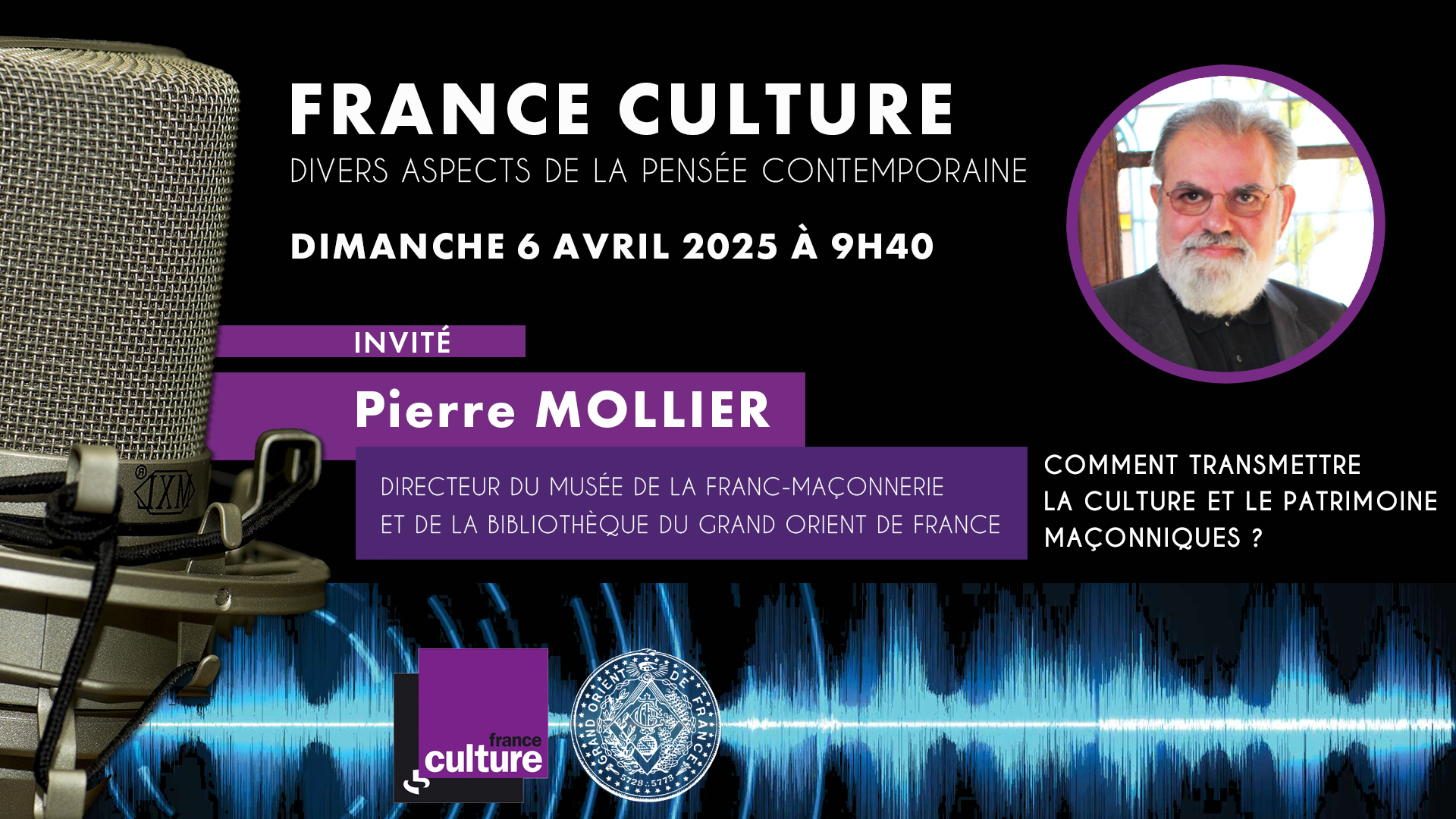 Invité : Pierre MOLLIER, Directeur du musée de la Franc-maçonnerie et de la bibliothèque du Grand Orient de France. Thème : Comment transmettre la culture et le patrimoine maçonniques ?